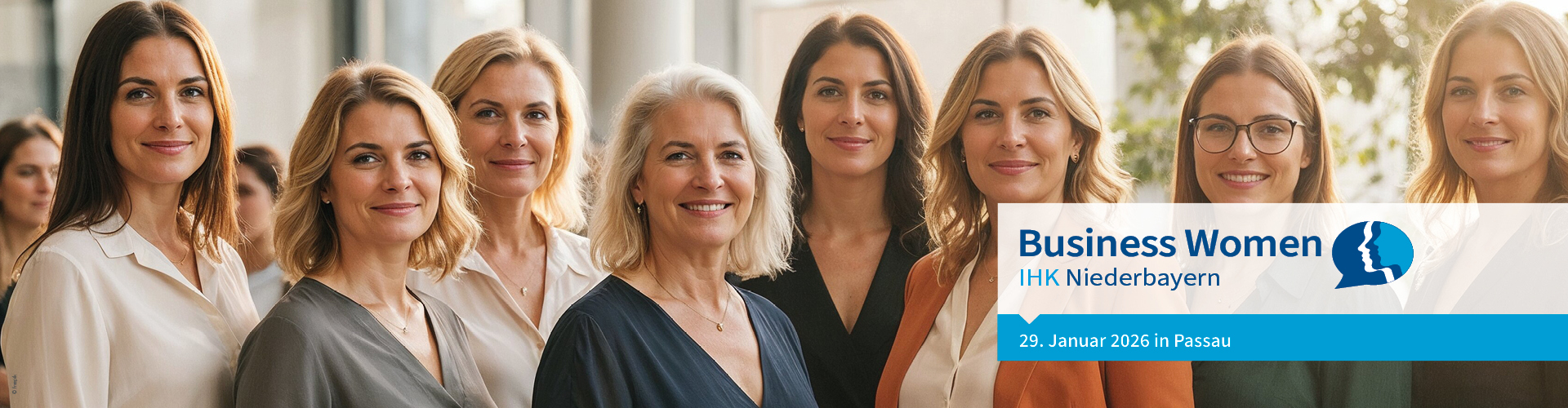 Mit dem neuen Unternehmerinnennetzwerk „Business Women IHK Niederbayern“ wollen wir weibliche Führung fördern, Frauen in der Geschäftswelt stärken und einen Raum für Kontakte und Austausch schaffen. Zur Auftaktveranstaltung dieses Netzwerks laden wir alle niederbayerischen Unternehmerinnen, Gründerinnen und Frauen in Führungspositionen herzlich ein.